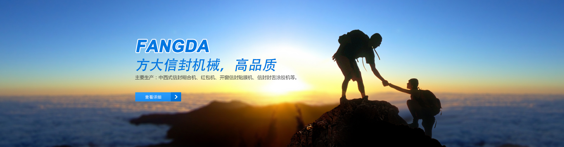 瑞安方大信封機(jī)械有限公司,是專業(yè)生產(chǎn)信封機(jī)糊合設(shè)備系列產(chǎn)品的企業(yè),主要產(chǎn)品有:中西式信封糊合機(jī)、紅包機(jī)、開窗信封貼膜機(jī)、信封封舌涂膠機(jī)等。實(shí)力來自規(guī)模,品質(zhì)源自專業(yè)。我廠擁有專業(yè)老練的工程設(shè)計(jì)人員,經(jīng)驗(yàn)豐富的生產(chǎn)安裝人員,嚴(yán)謹(jǐn)認(rèn)真的質(zhì)量檢驗(yàn)人員,從而保證了所生產(chǎn)機(jī)械的優(yōu)良品質(zhì)。此外,我廠也將從技術(shù)上、性能上不斷改進(jìn)提高,以更好的滿足客戶的需求。“客戶至上,服務(wù)為本”是我廠長期一貫的服務(wù)理念,從安裝、測試、保養(yǎng)、維修等售后服務(wù),我們會給予客戶充足的信息資訊與技術(shù)支持,因此在業(yè)界獲得良好的口碑及信譽(yù),您的滿意是我們的榮耀!歡迎您來電查詢、來人參觀,我們一定能給你滿意的答復(fù)!秉承“顧客至上,銳意進(jìn)取”的經(jīng)營理念,堅(jiān)持“客戶為先”的原則為廣大客戶提供溫馨的服務(wù)。歡迎惠顧!